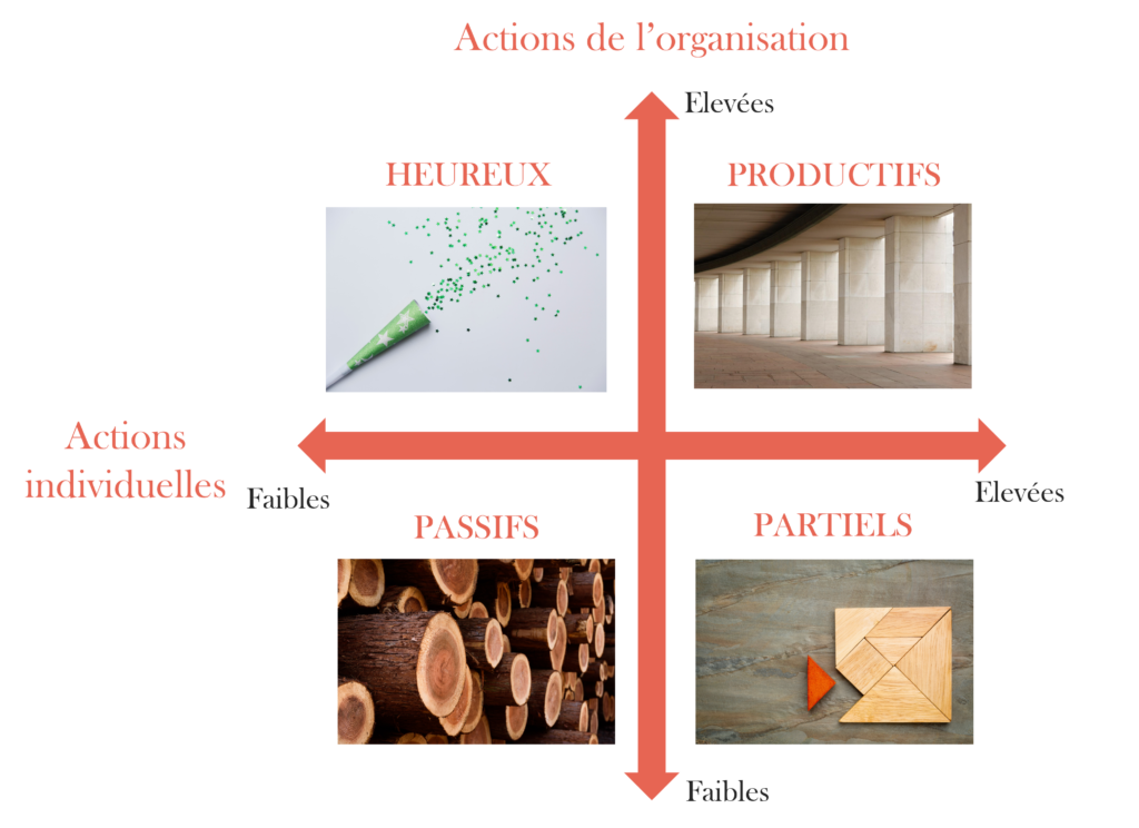 - Un axe « actions individuelles » : comment le salarié plafonné se comporte vis-à-vis de cette situation (veulent-ils la voir évoluer ou non).